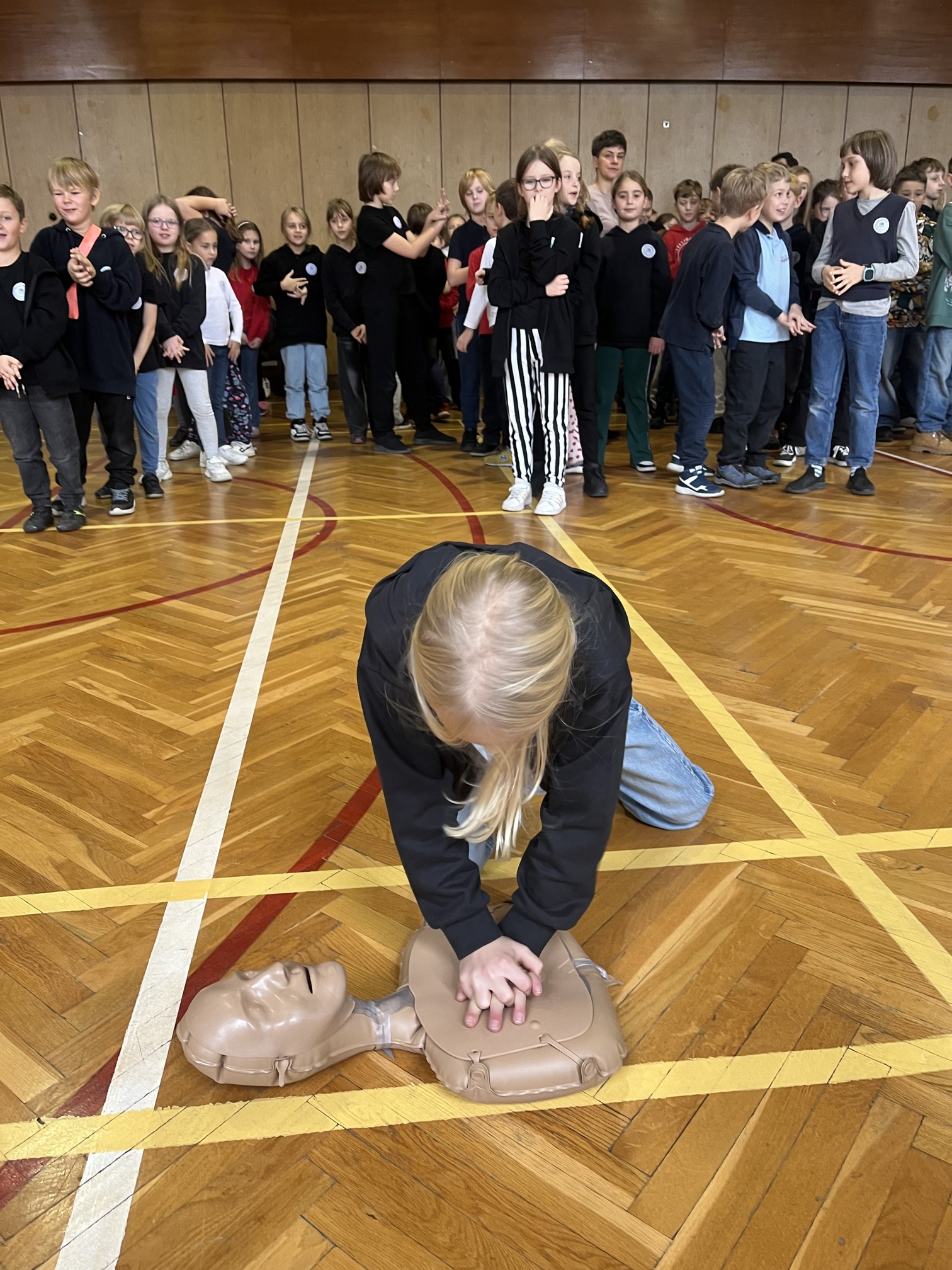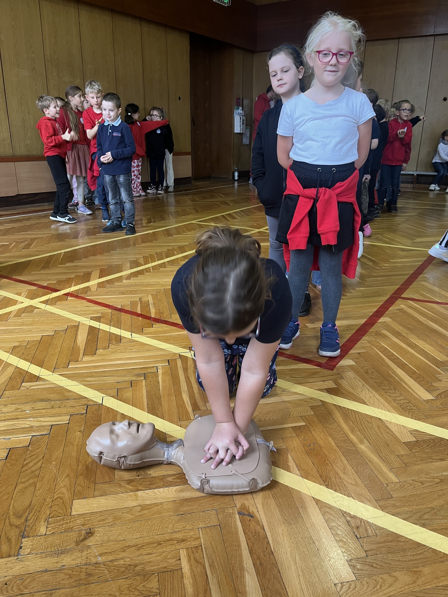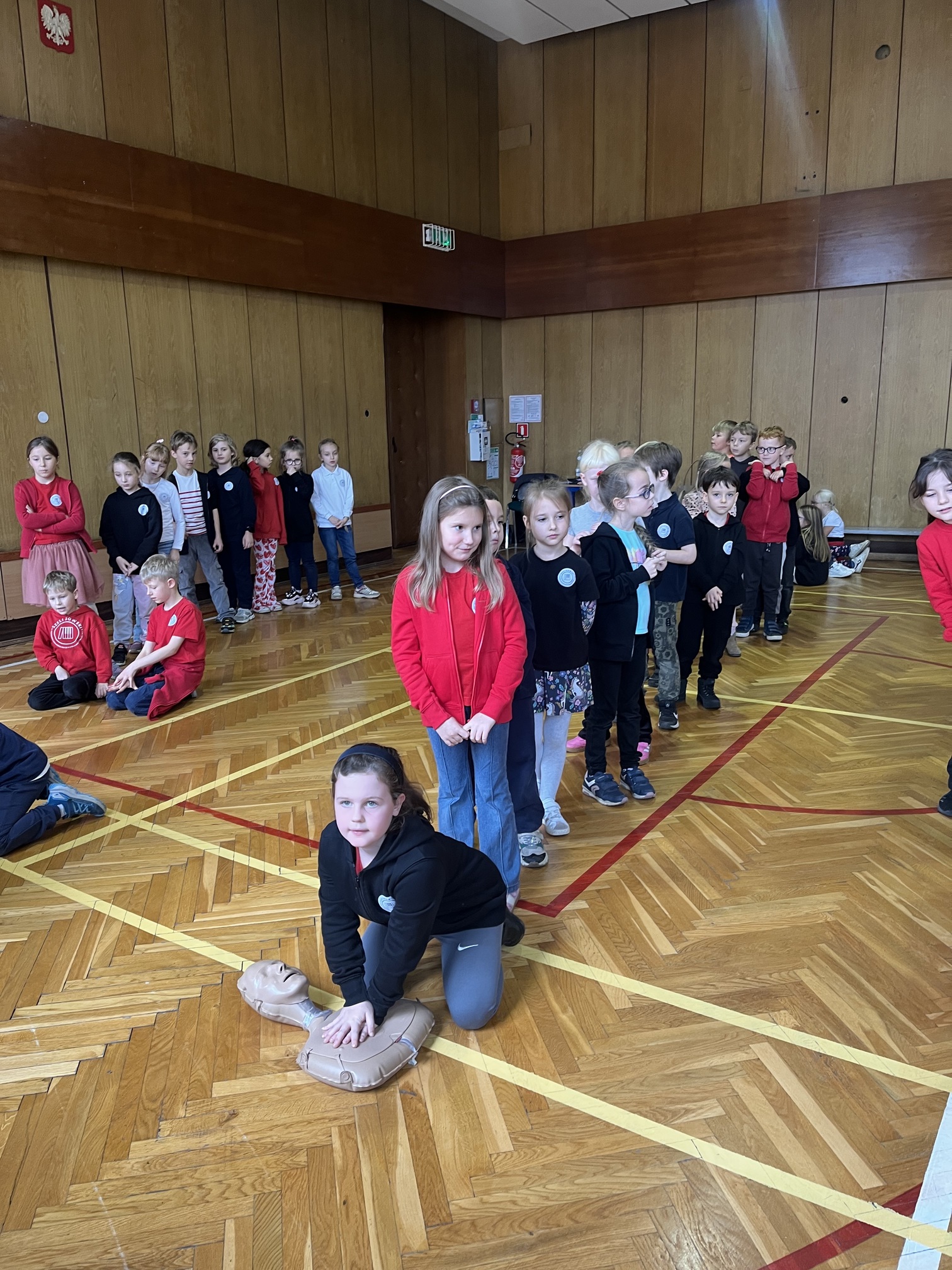 W naszej sali gimnastycznej zgromadziło się 160 osób – uczniów, nauczycieli, pracowników szkoły i zaproszonych gości – którzy wspólnie, przez 30 minut, prowadzili RKO na fantomach, pokazując, że potrafimy nie tylko się bawić, ale przede wszystkim ratować życie.