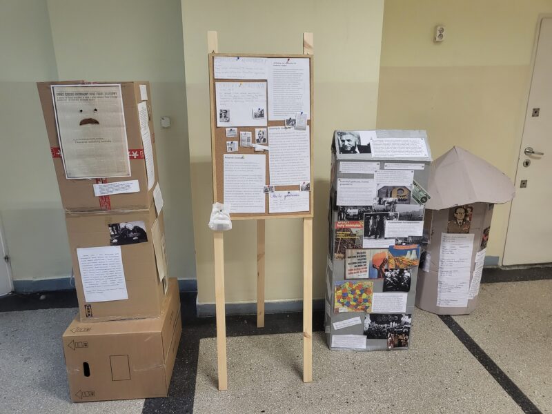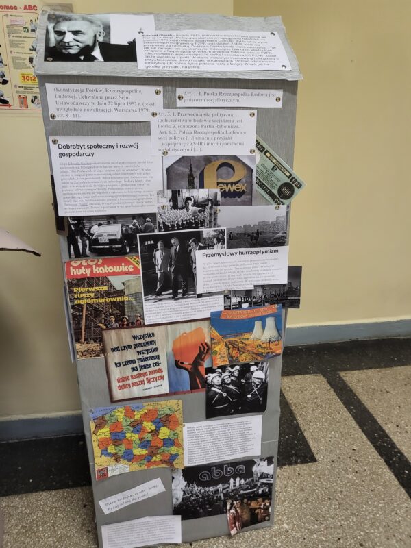Najstarsi uczniowie naszej szkoły zdobywali i utrwalali wiedzę metodą poster pillar- słup ogłoszeniowy. Zespoły zajmowały się przydzielonymi epokami PRL- stalinizm, mała stabilizacja, l. 70-te i l. 80-te.
