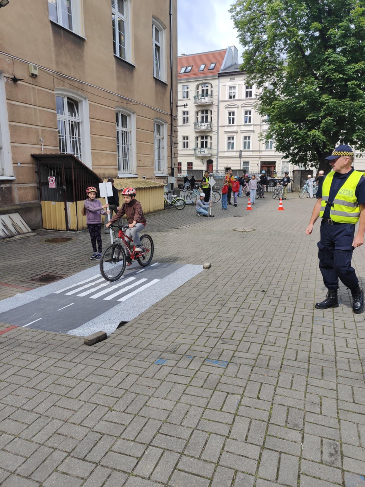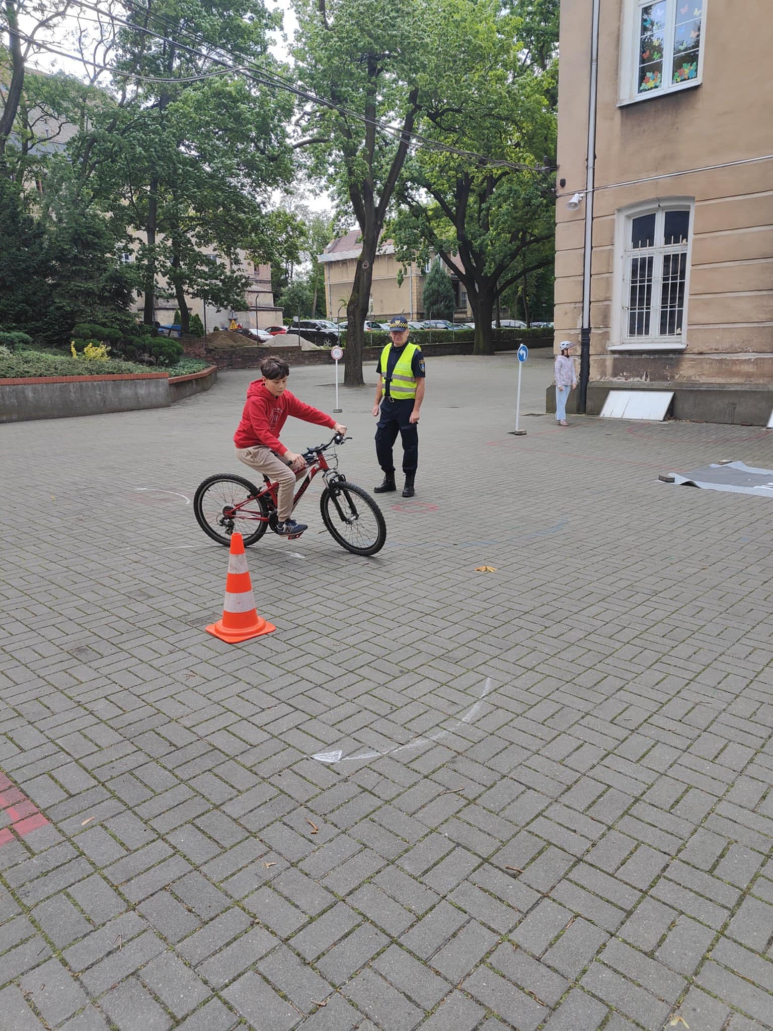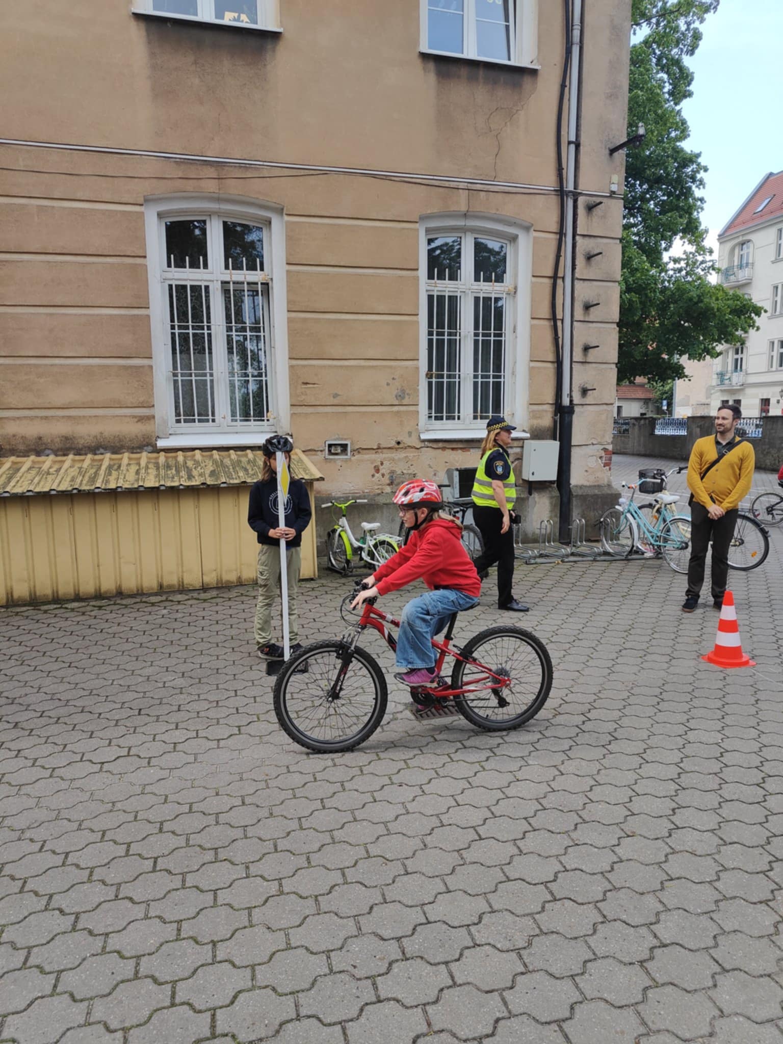 Pod okiem funkcjonariuszy straży miejskiej dzielnie pokonywali tor przygotowany specjalnie na tę okoliczność. Było trochę stresu lecz radości zdecydowanie więcej. Wszyscy pięknie zdali sprawdzian praktyczny umiejętności jazdy na rowerze.