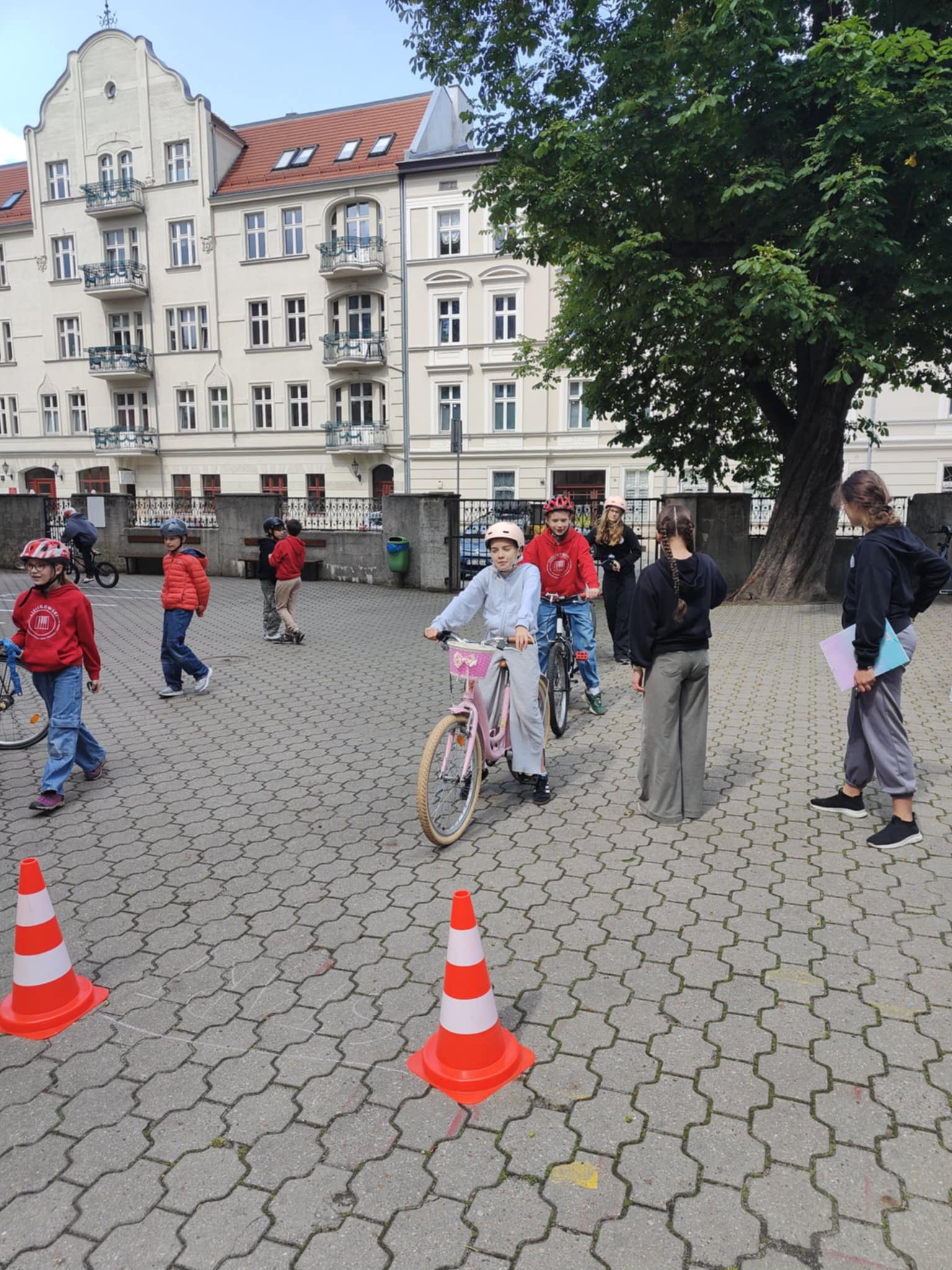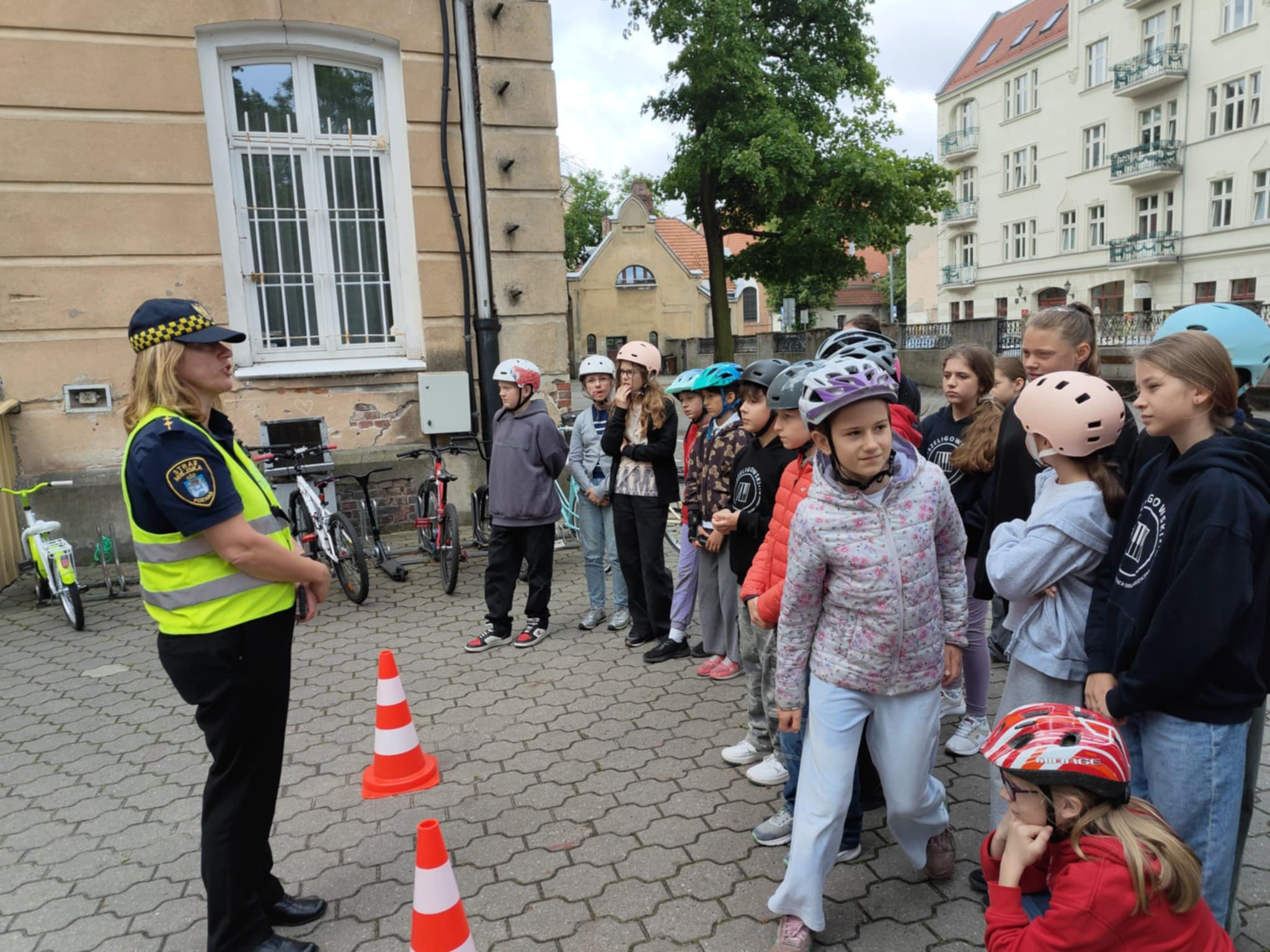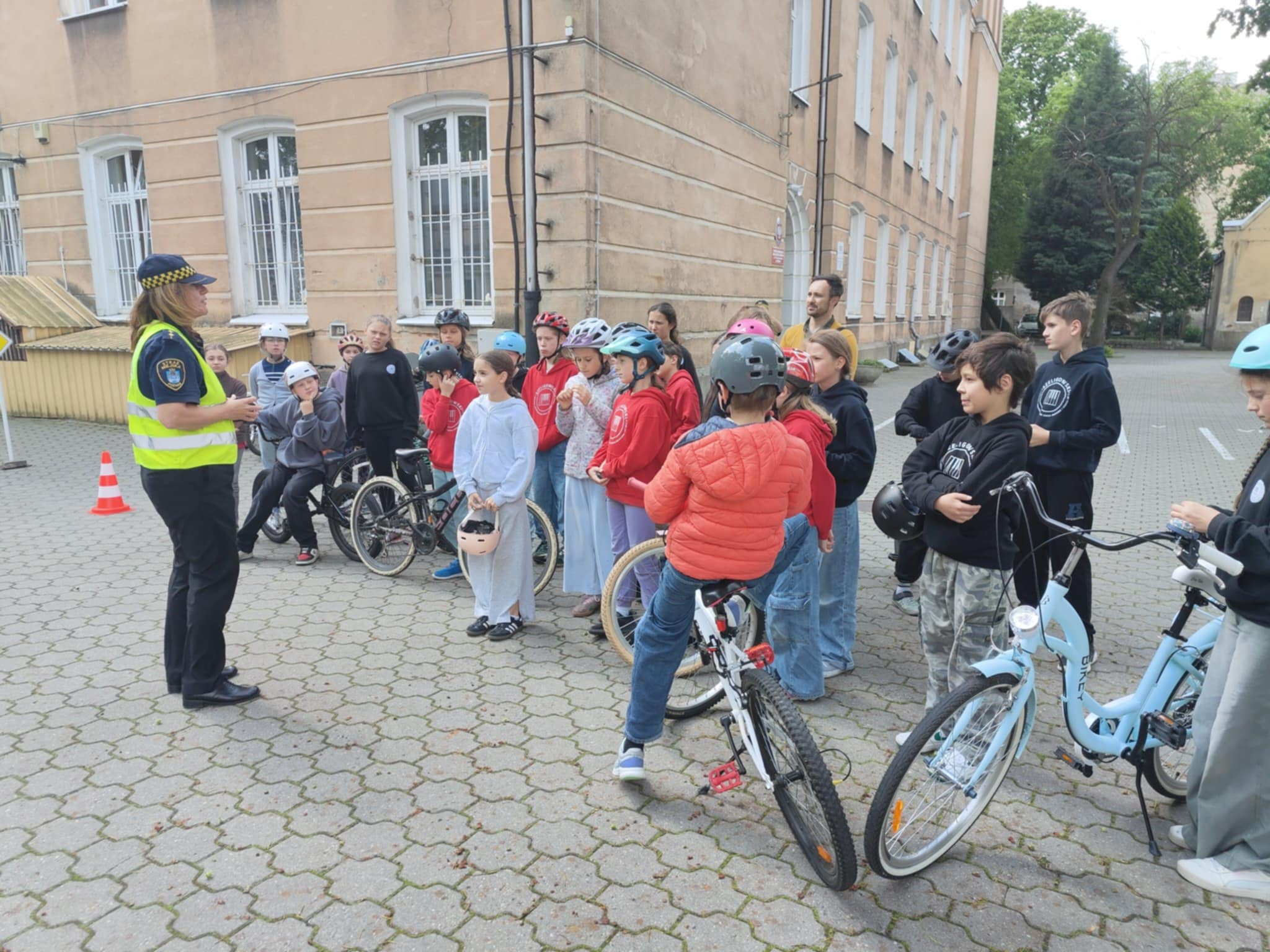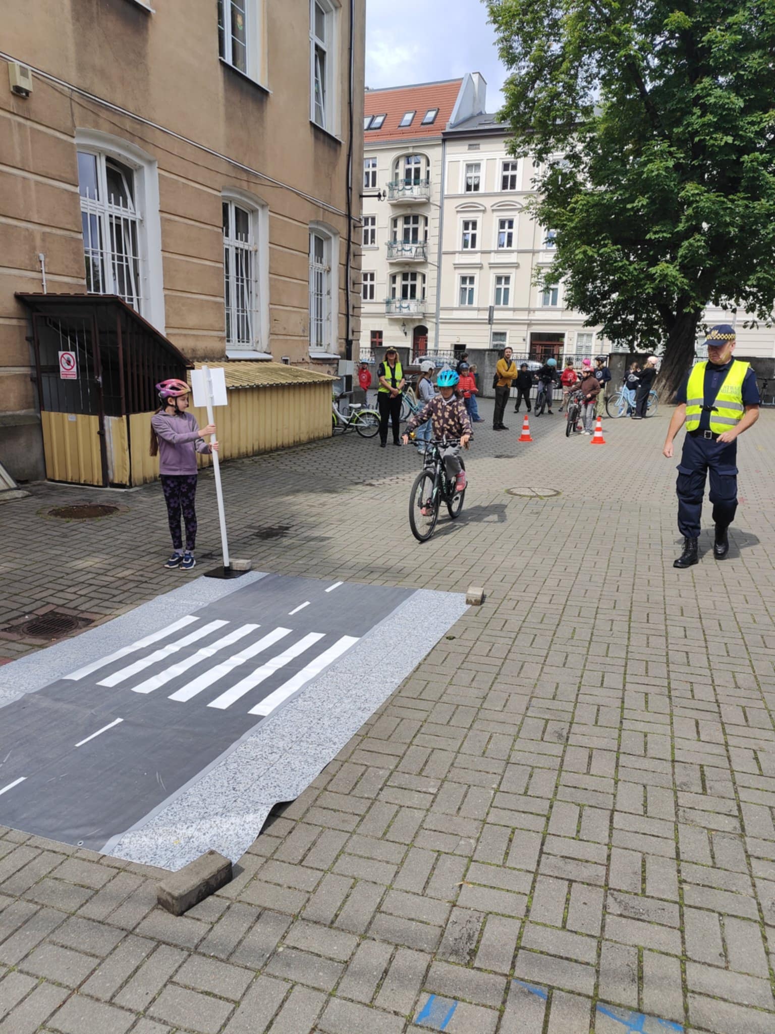 Pod okiem funkcjonariuszy straży miejskiej dzielnie pokonywali tor przygotowany specjalnie na tę okoliczność. Było trochę stresu lecz radości zdecydowanie więcej. Wszyscy pięknie zdali sprawdzian praktyczny umiejętności jazdy na rowerze.