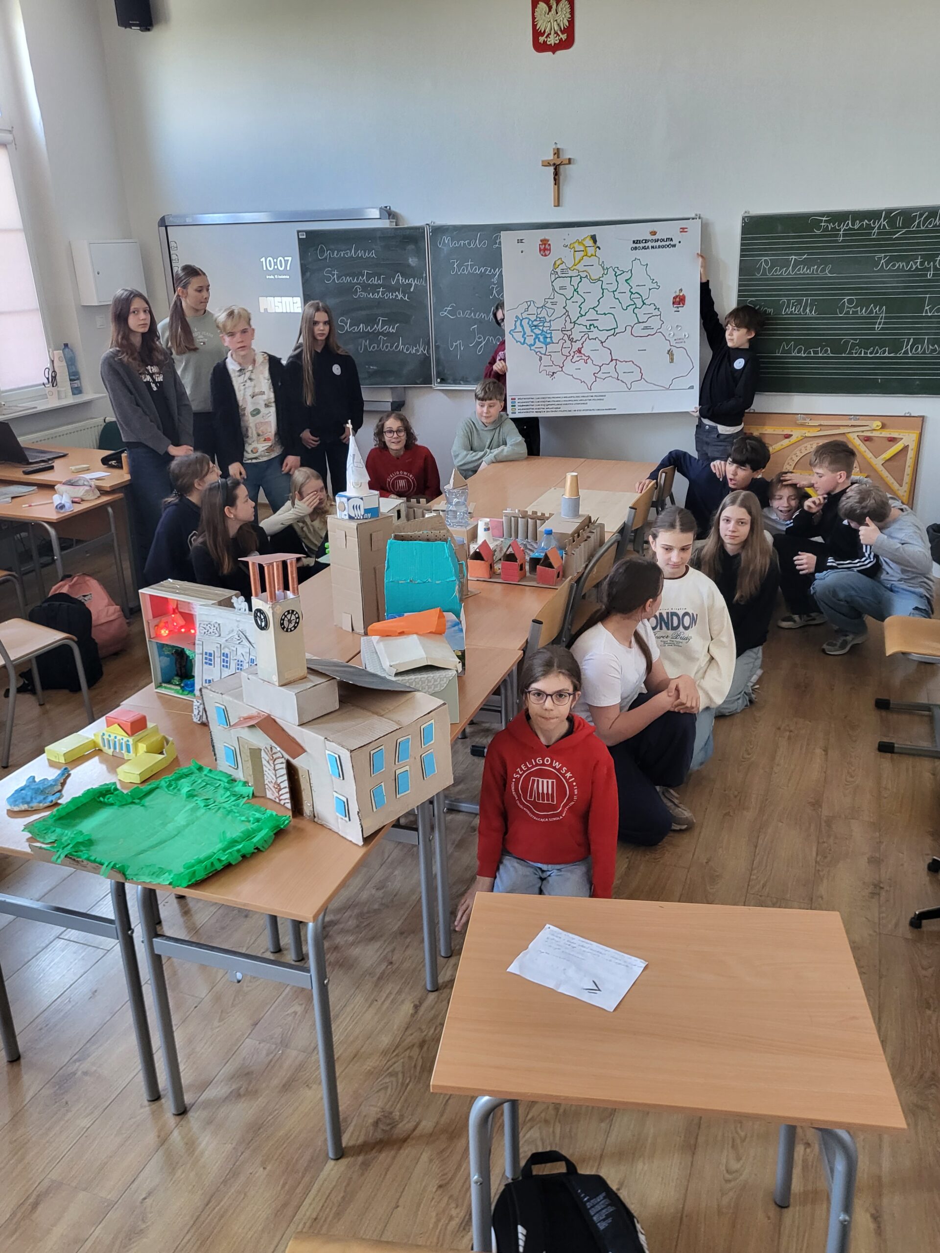 Nauka metodą projektu. Zespoły klasowe stworzyły i zaprezentowały makiety najpiękniejszych zabytków architektury XVIII-wieku w Wielkopolsce. Tłem pokazu była imponująca mapa Rzeczypospolitej w czasie największej potęgi terytorialnej (1619-1632).