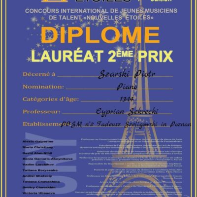 Kolejne wielkie gratulacje dla Piotra Szarskiego za reprezentowanie Poznańskiej Szkoły Muzycznej im. T. Szeligowskiego w Poznaniu.