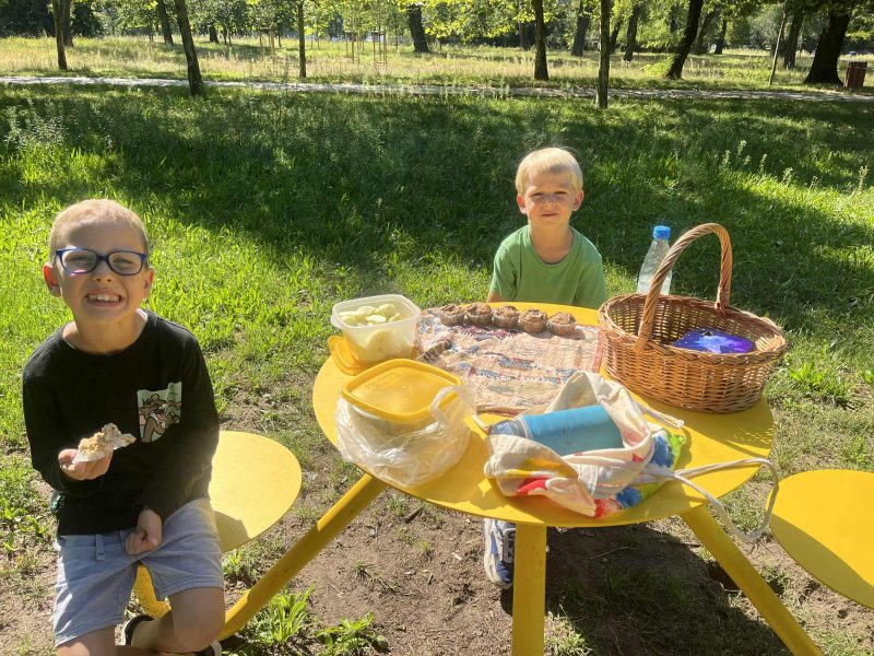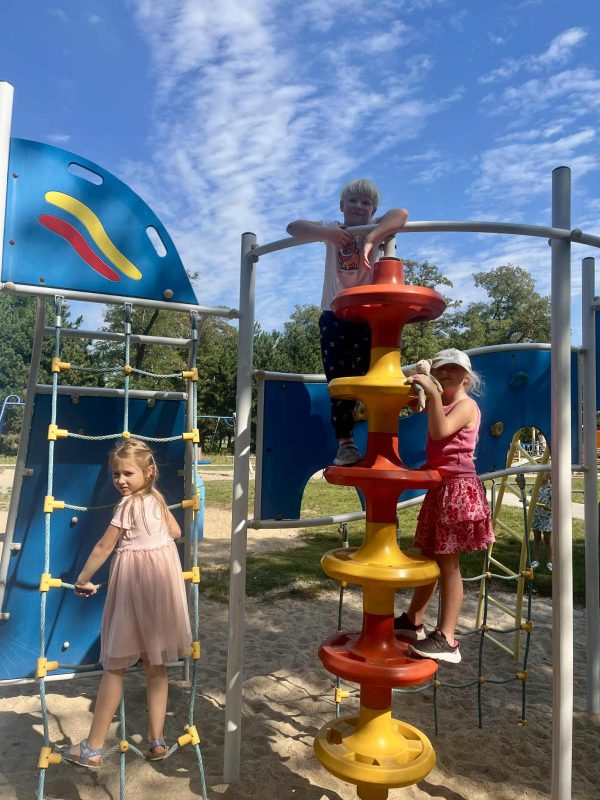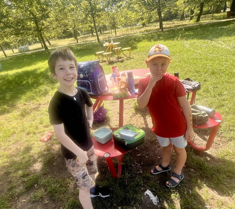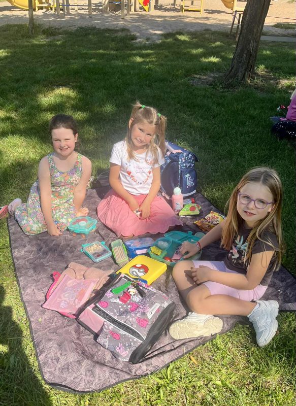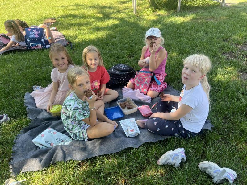 Były gry, zabawy na placu zabaw, rozmowy, dzielenie się przekąskami i wiele innych atrakcji, które dostarczyły mnóstwo śmiechu i pozytywnej energii. Nie zabrakło też czasu na wspólny odpoczynek, rozmowy i dzielenie się wrażeniami z pierwszych dni w szkole.