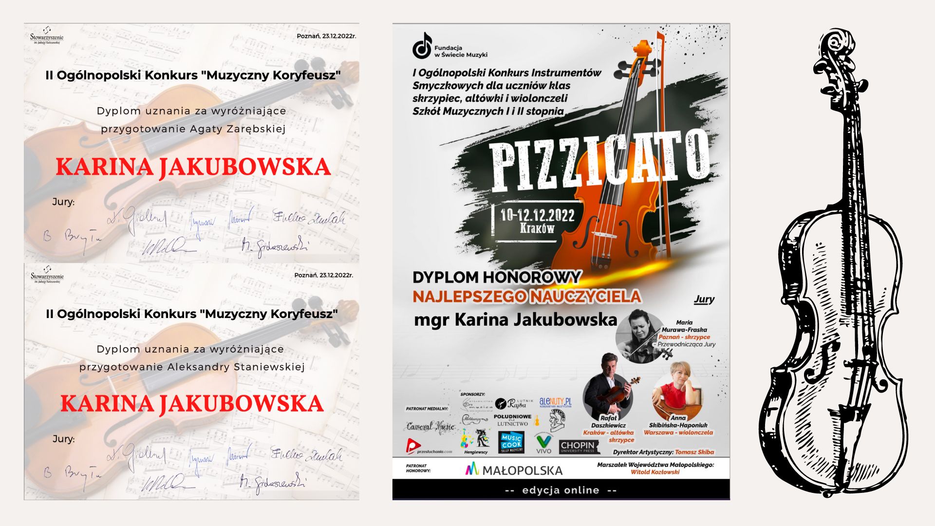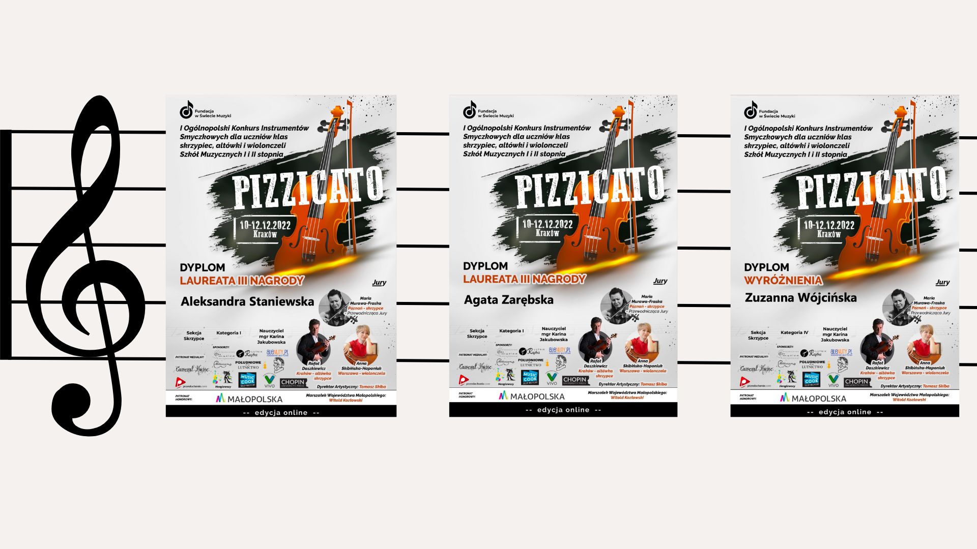 I Ogólnopolski Konkurs Instrumentów Smyczkowych PIZZICATO dla uczniów klas skrzypiec, altówki, wiolonczeli szkół muzycznych 1 i 2 stopnia również przyniósł radosne wieści.