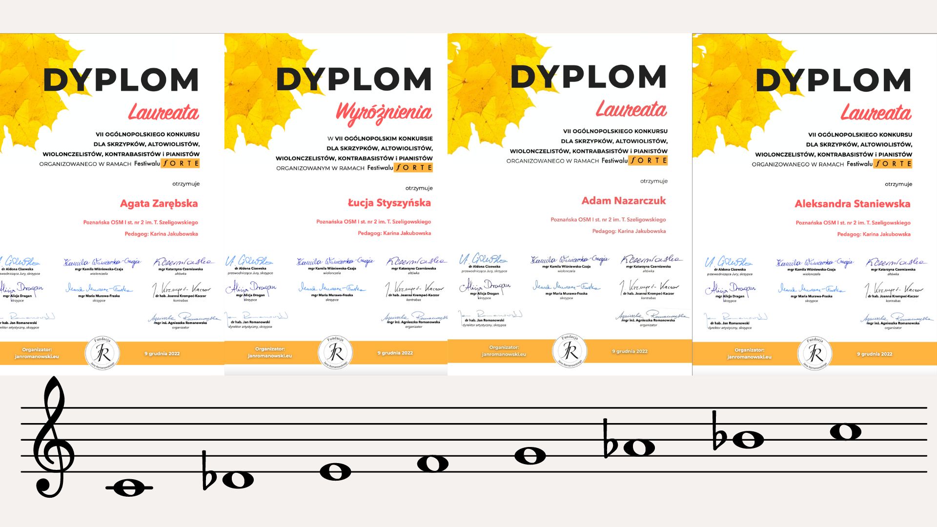 VII Ogólnopolski Konkurs w ramach Festiwalu Forte przyniósł wszystkim biorącym w nim udział laury – Aleksandra Staniewska , Agata Zarębska, Adam Nazarczuk otrzymali dyplomy laureata, Łucja Styszyńska dyplom wyróżnienia.