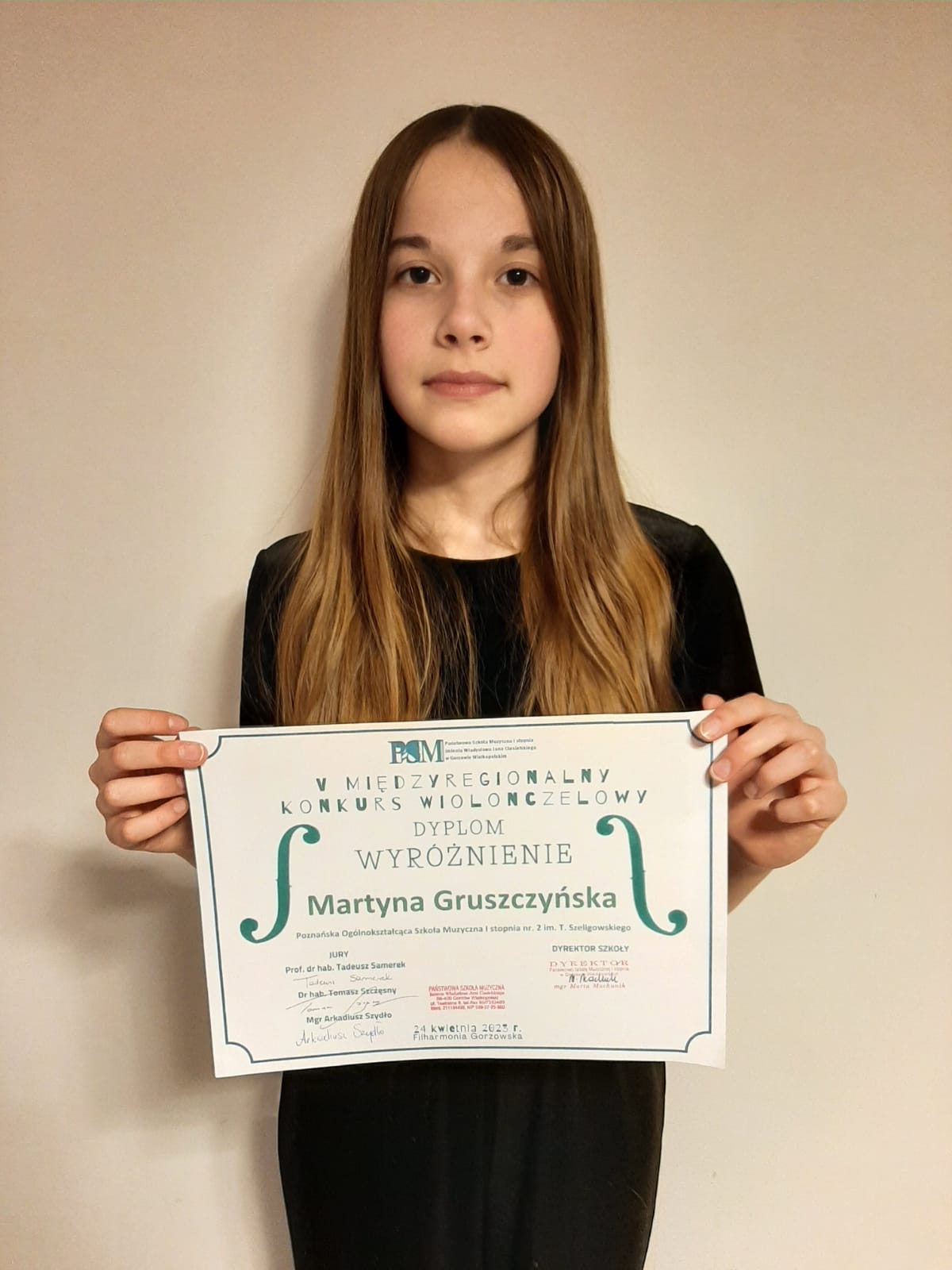 Miło mi poinformować, że moje uczennice z 6 klasy otrzymały nagrody na Międzyregionalnym Konkursie Wiolonczelowym w Gorzowie Wielkopolskim.